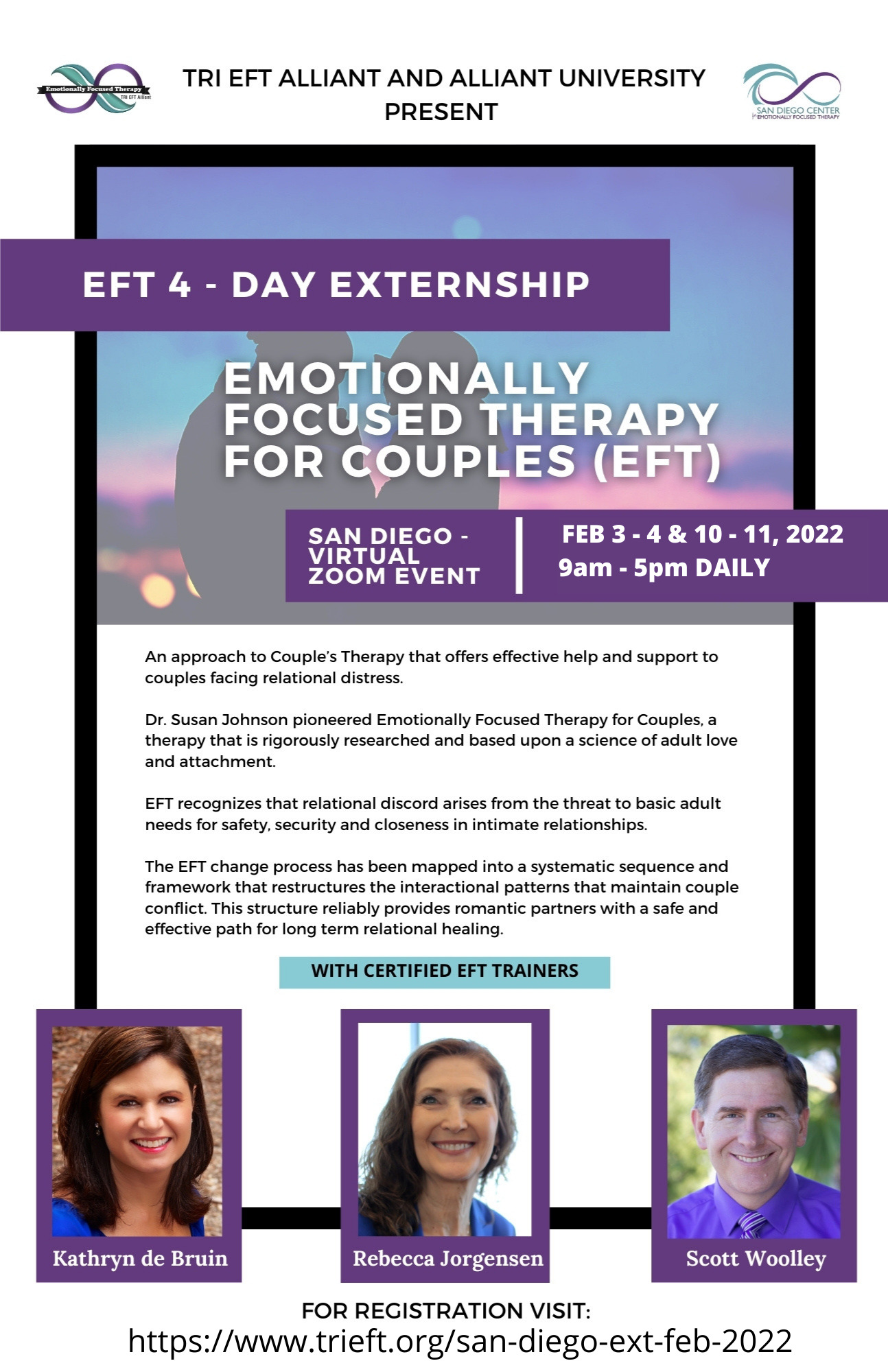 This is an official Externship, endorsed by the International Centre for Excellence in Emotionally Focused Therapy (ICEEFT) and brought to you by TRI EFT Alliant and Alliant International University.